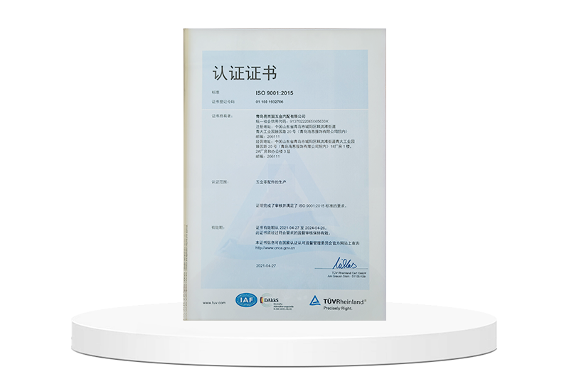 青島易而固公司成立于2004年,位于中國北方美麗的海港城市青島, 地理位置優(yōu)越,交通方便。公司所在的工業(yè)園區(qū),離青島膠東國際機(jī)場僅30 分鐘車程,離國際海運(yùn)集裝箱碼頭僅50分鐘車程,公司周邊有許多生產(chǎn)原材料和產(chǎn)品外協(xié)配套廠家,是五金產(chǎn)品加工和進(jìn)出口貿(mào)易的理想場所。